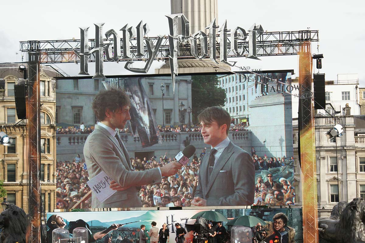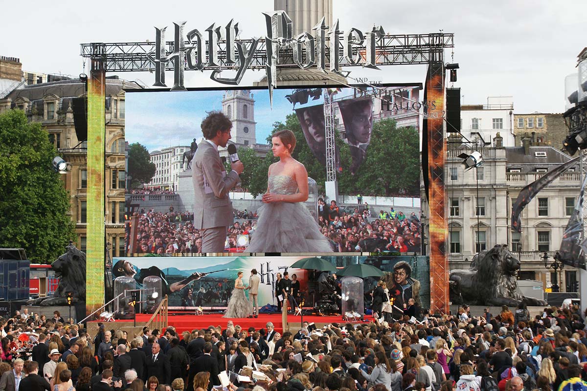 We were thrilled to work on the World premier of the final Harry Potter Film. Working once again with West Design and Production, we provided the giant high definition screens to showcase the iconic trailer, and ran camera footage and interviews throughout the event. Boasting the longest red carpet in history, the event, held in Trafalgar Square, was a huge success.Harry Potter 7 Premiere, Trafalgar Square